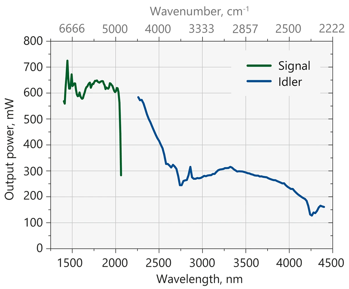 | Idler | 2250– 4400 nm (4444–2273 cm‑1) |